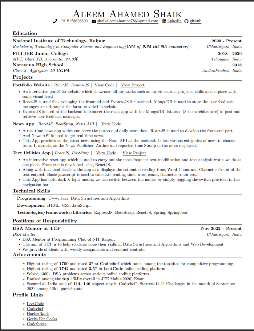 - Responsible for guiding the students in the field of DSA and Competitive Programming.